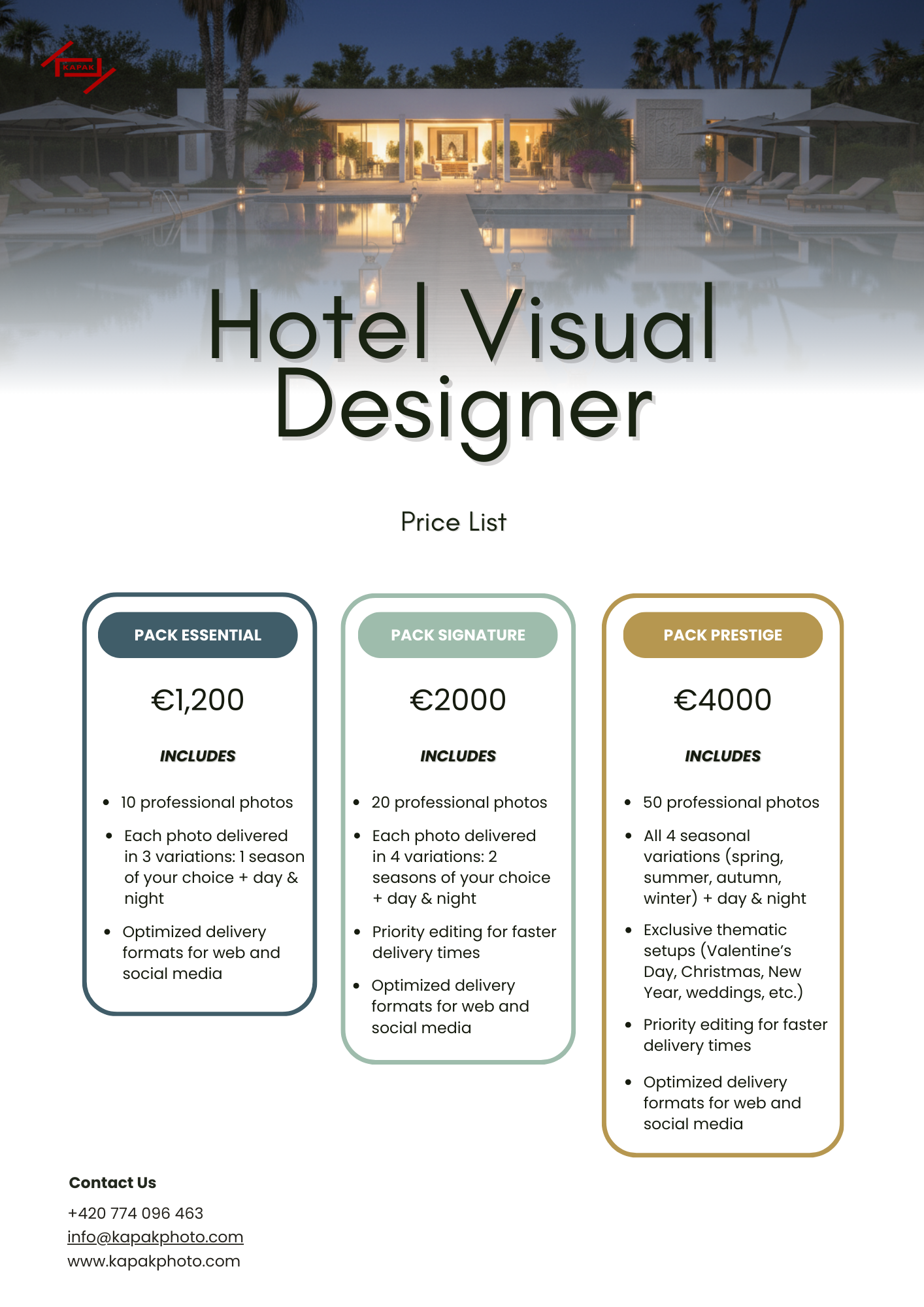Proto jsem nedávno navázal spolupráci s talentovanou designér. Společně nabízíme službu na míru v oblasti fotografie a vizuální tvorby určenou speciálně pro hotely, které chtějí posílit svou image a přilákat více hostů.